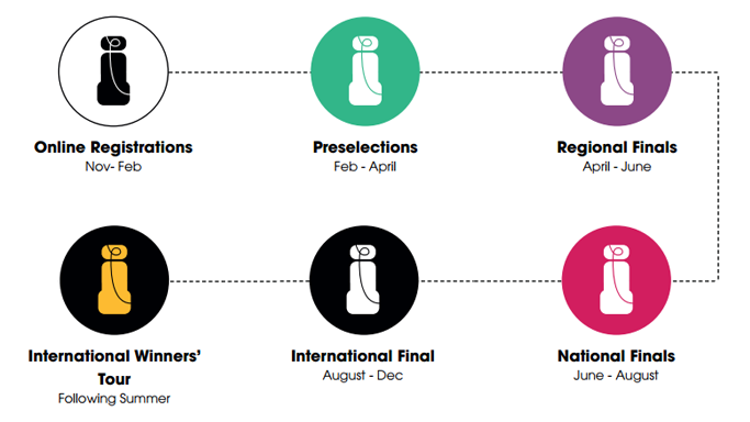 National Imagine competitions are held annually in each participating country, culminating in the international Imagine Festival, where the winning bands from each country come together to compete for the chance to win an international Imagine tour.